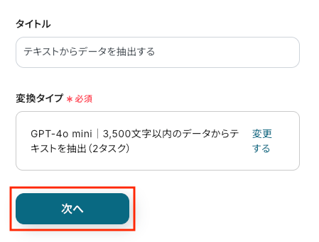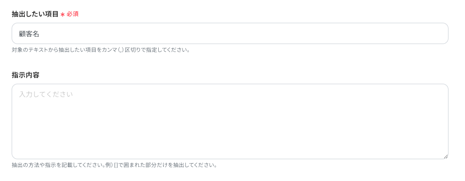 ※AIを使用した「データの抽出」アクションの設定方法 もご参照ください。