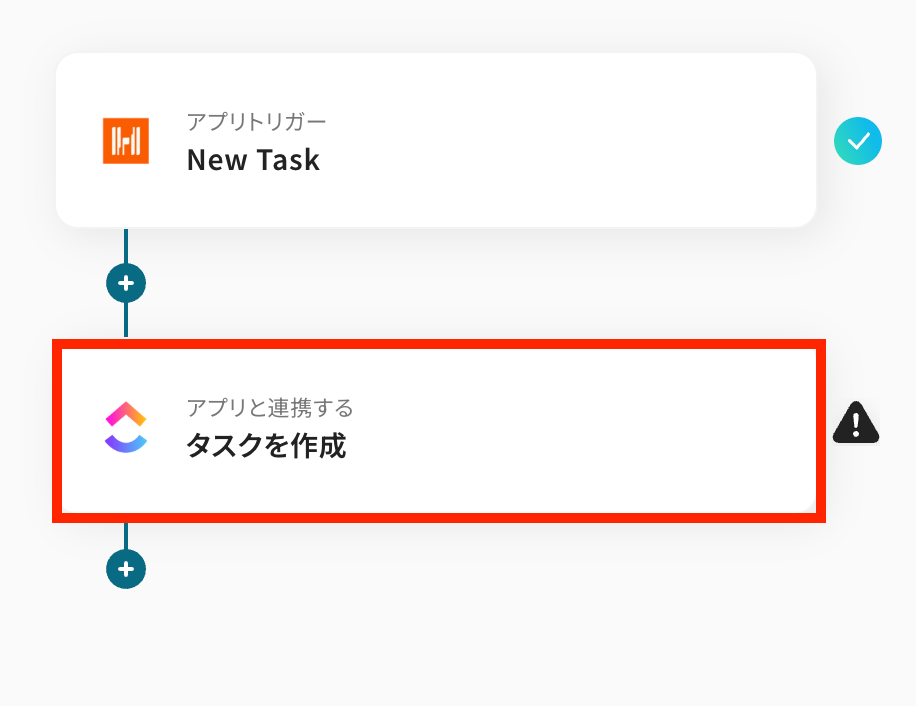 このワークフローは、Harvestで新しいTaskが作成されると、自動でClickUpにタスクを作成する処理を実現します。