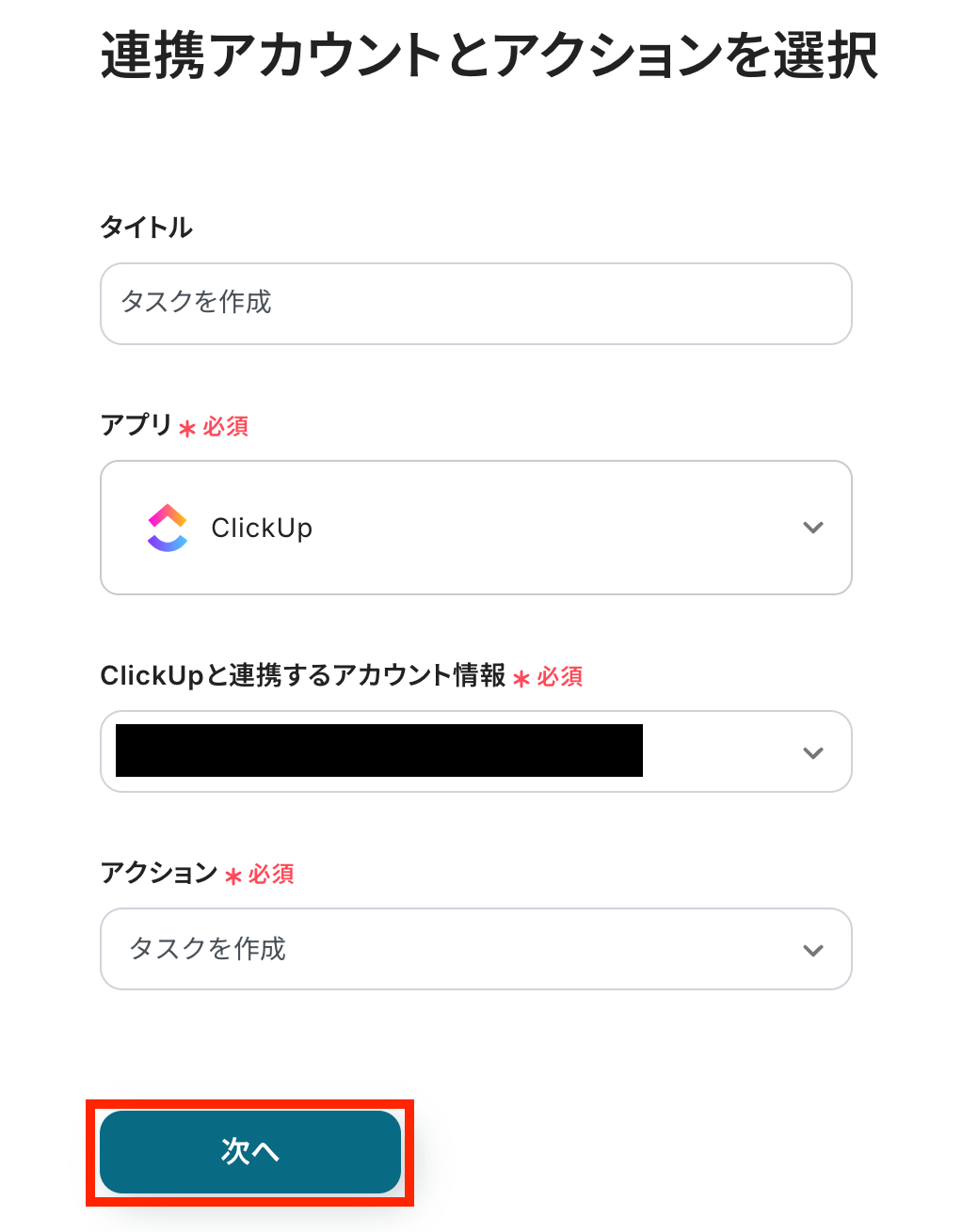 Harvestから取得した値を利用して、ClickUpにタスクを作成する設定を行います。