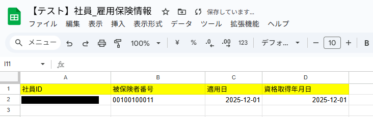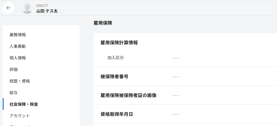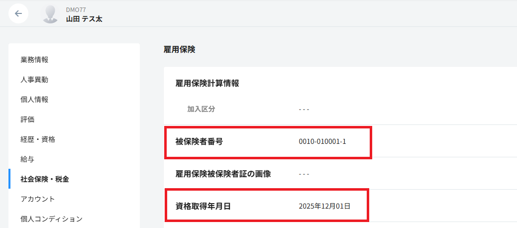 実際にHRMOSに登録されている雇用保険情報(※テストデータで可)を入力しておきましょう。