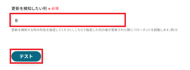 「更新を検知したい列」:更新を検知する列の列名を指定します。