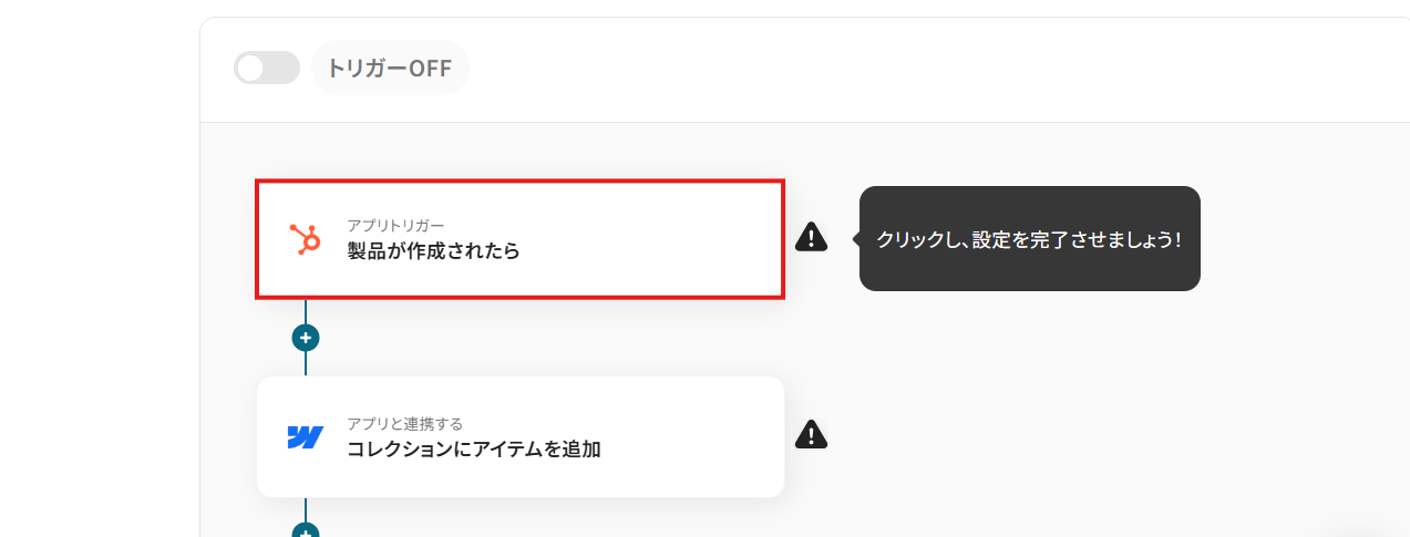ステップ3:HubSpotに製品が作成されたら起動するトリガー設定