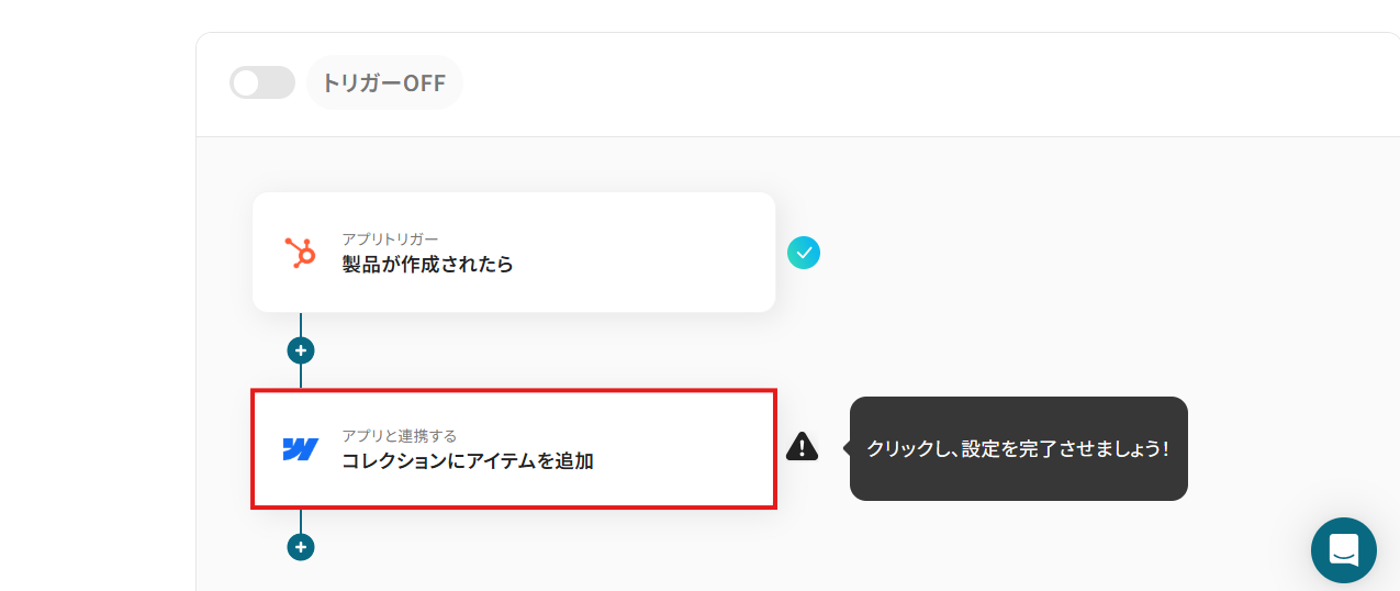 これで「Hubspotで製品が作成されたら、Webflowにアイテムを追加する」フローの完成です!