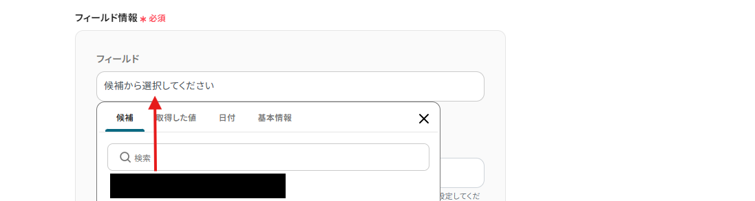 フィールドも、枠内をクリックし表示される候補から使用したいものを選択してください。