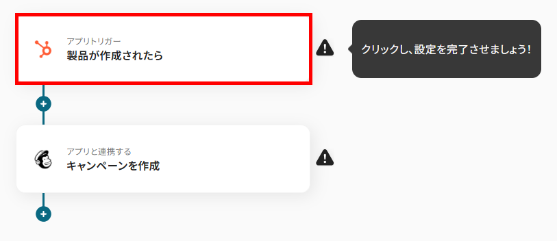 この連携を利用することで、HubSpotでの製品登録をトリガーにして、関連するキャンペーン情報をMailchimpに自動で作成できます。