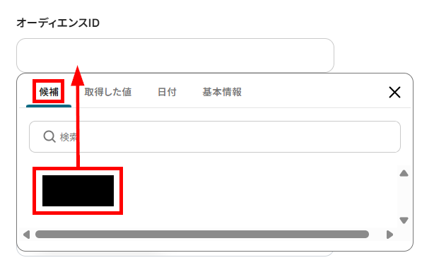 オーディエンスIDとテンプレートIDは、以下のように候補が表示されるので任意の項目を設定します。