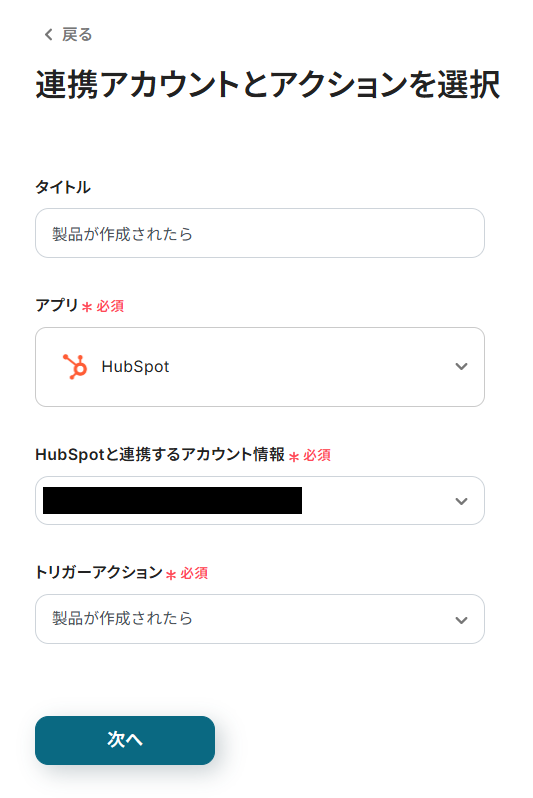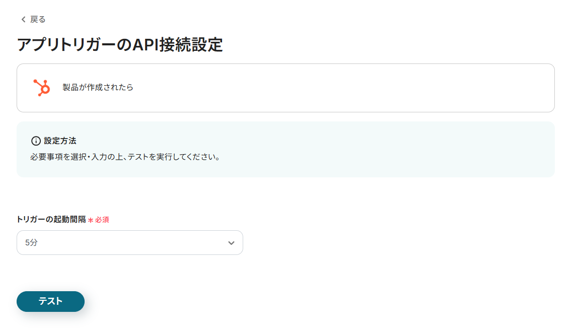 ここで設定した時間間隔ごとに1度、HubSpotで製品が作成されたかを確認します。
