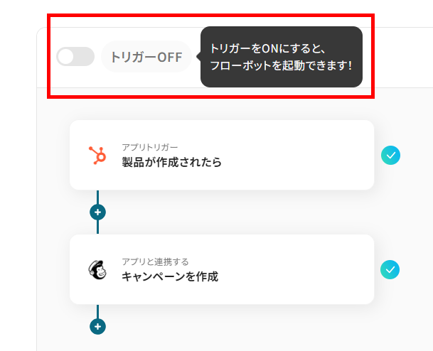今回は「Hubspotで製品が作成されたら、Mailchimpにキャンペーンを作成する」フローを作成していきます!