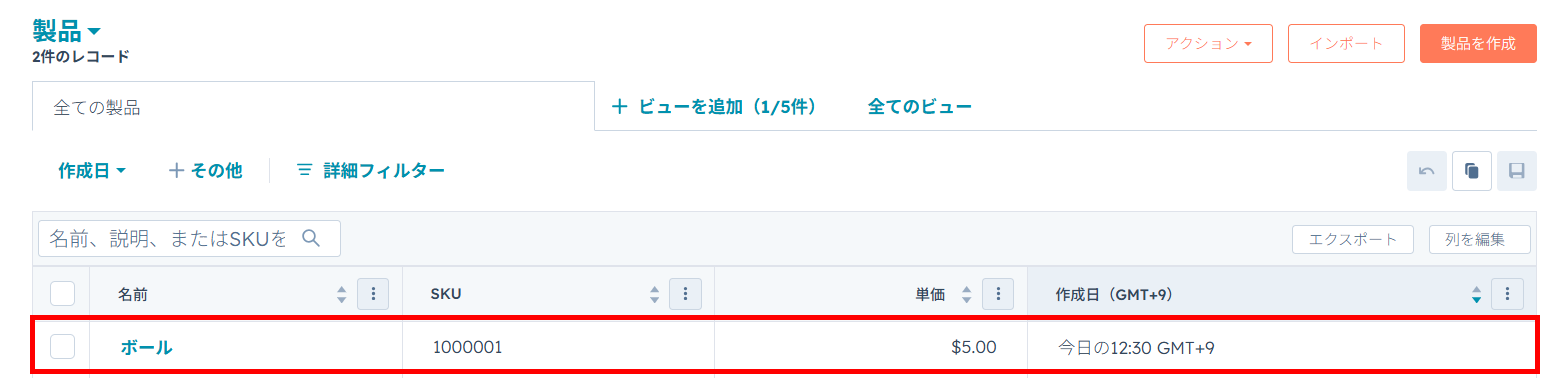 トリガーの起動間隔の設定をしたら、HubSpotに製品を登録してからテストを行いましょう。