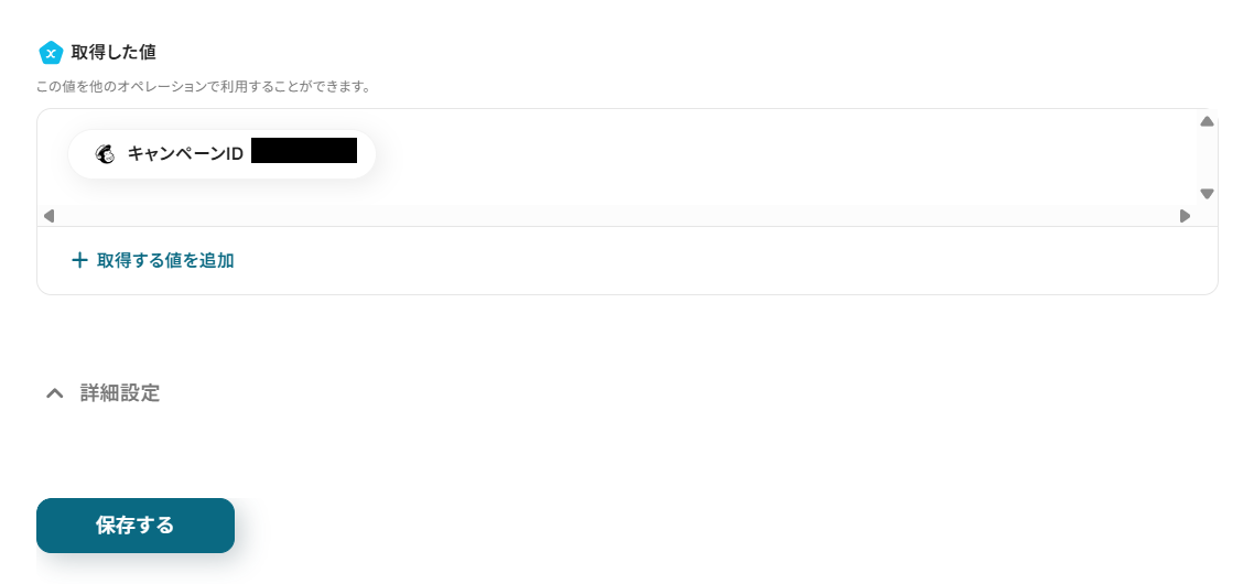 キャンペーンが作成されたことを確認したら、Yoomに戻り設定を保存します。