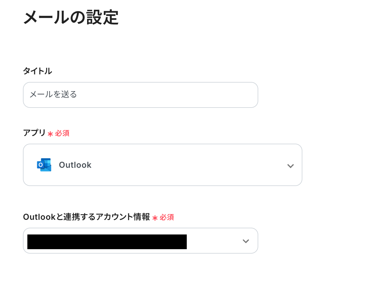 Hunterから取得した値を利用して、Outlookでメールを送信する設定を行います。