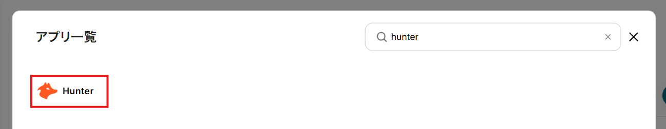 検索窓にHunterと入力し、表示された候補からアプリを選択します。