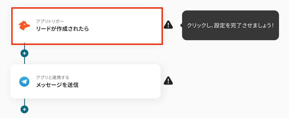 コピーしたテンプレートの、「リードが作成されたら」をクリックしてください。