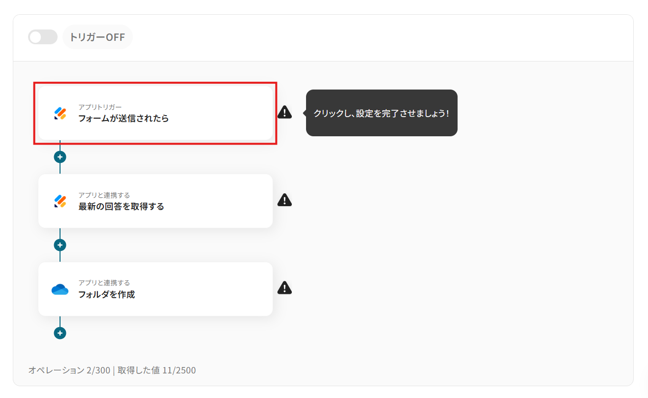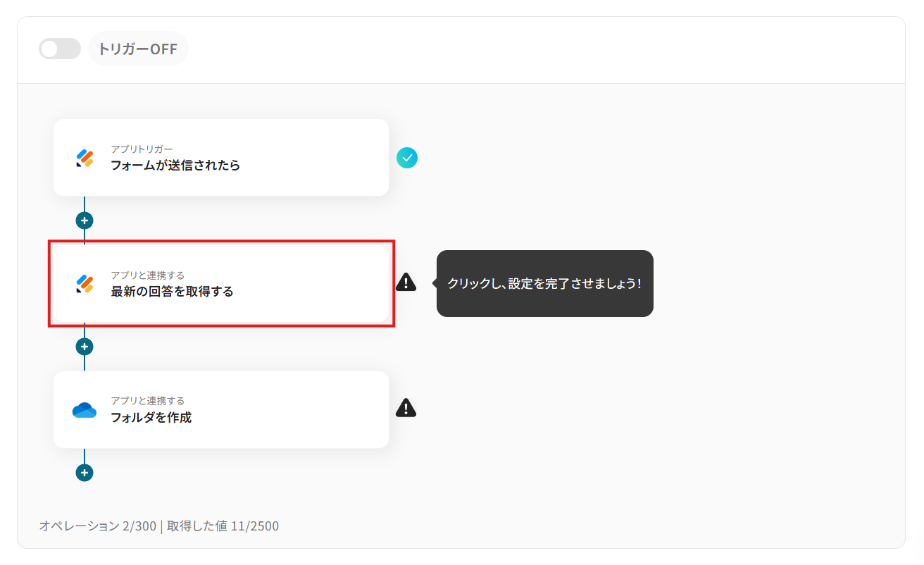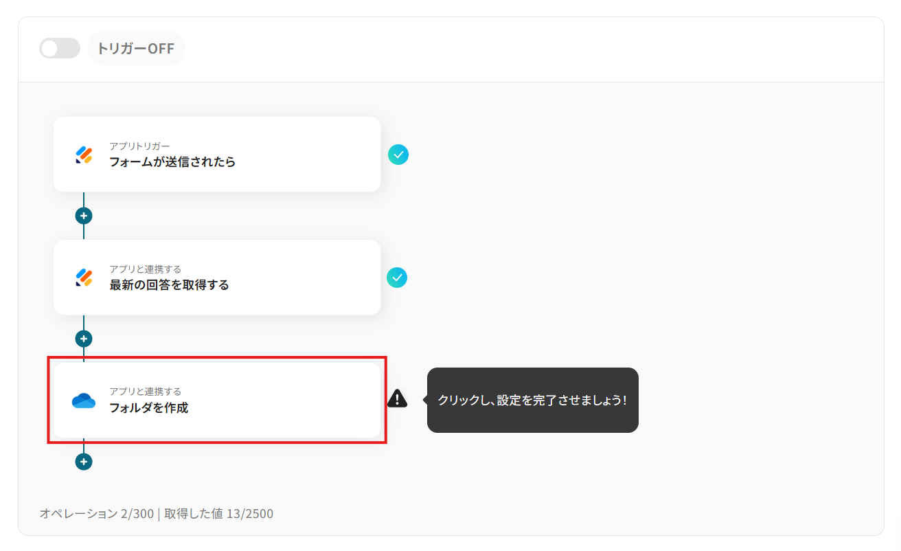 特に、特定の回答があった場合のみフォルダを作成したい場合には、毎回内容を確認する手間も発生します。