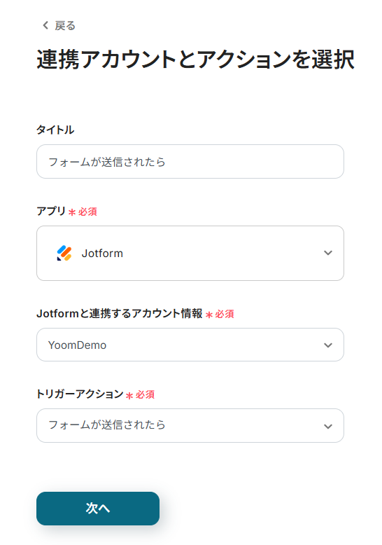 ステップ3:Jotformのトリガー設定