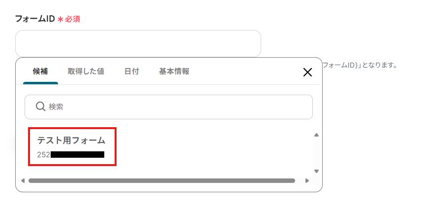 ここで指定したフォームが送信された際にフローが起動します。