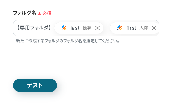 これによって、「年/月/顧客名」のような構成のフォルダも動的に作れます。