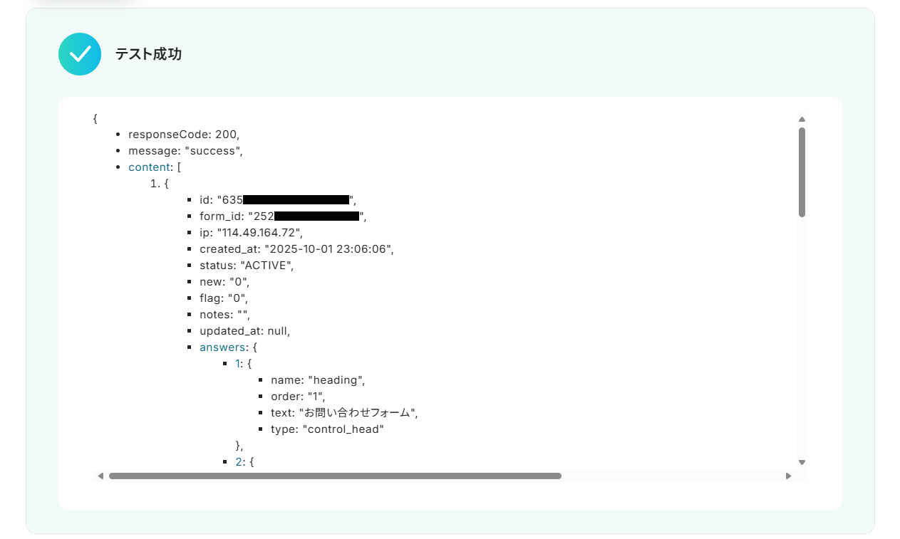 - Jotformで回答内容を取得する方法はこちらをご参照ください。