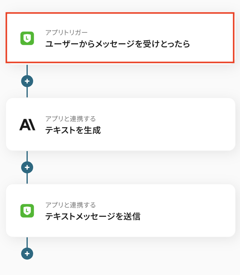 ここで受信したメッセージがトリガーイベントとなり、自動化の起点となります。