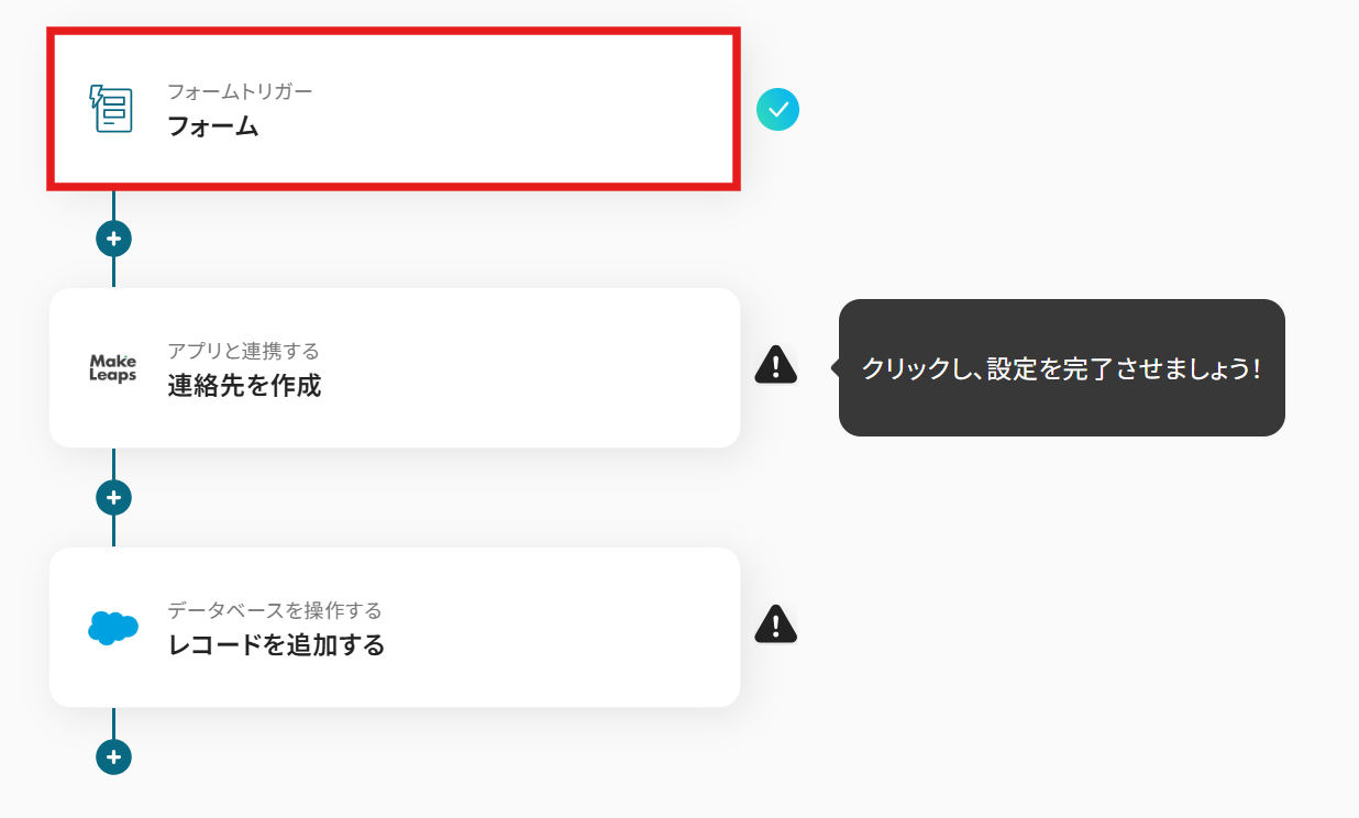 この自動化を設定すれば、Salesforceにリードが追加されたことをトリガーに、自動でMakeLeapsにも対応する連絡先を作成します。