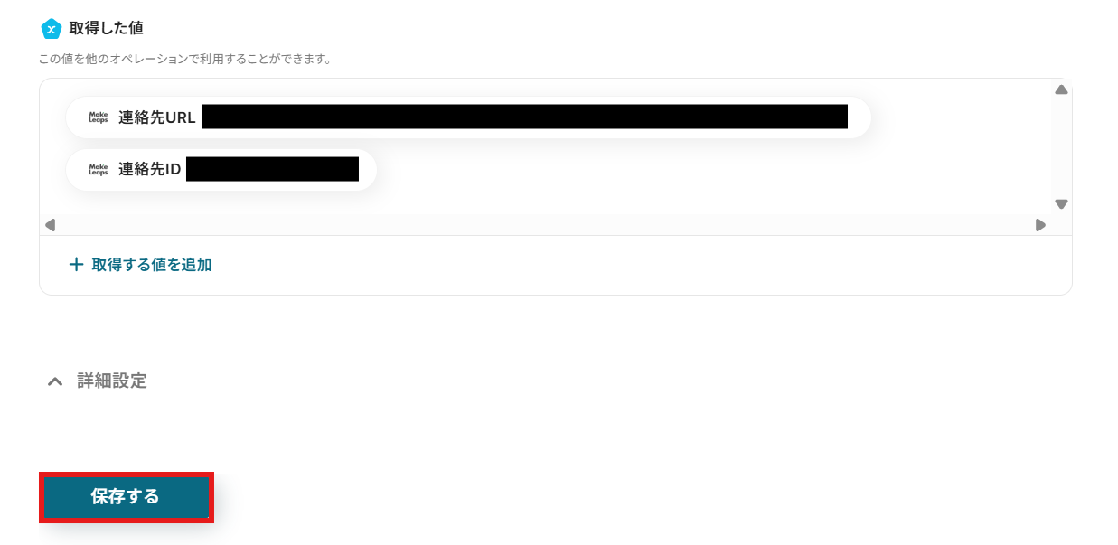 取得した値には、MakeLeaps・Salesforceに登録するためのテスト用の連作先情報を入力しましょう。