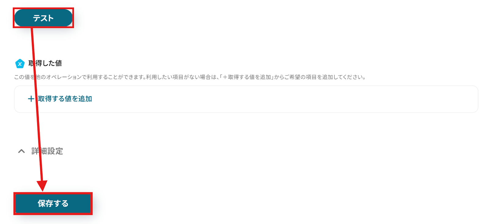 設定が終わったら「テスト」をクリックし、問題がなければ保存しましょう。