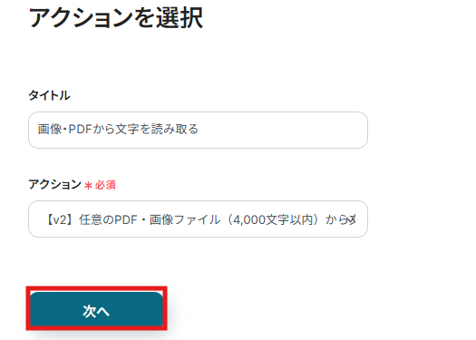 ステップ5:画像・PDFから文字を読み取るアクションを設定