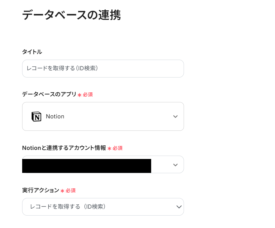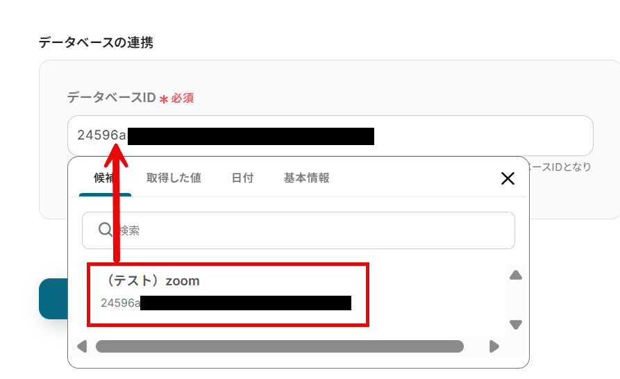 データベースIDのフィールドをクリックすると、候補のデータベースが出てくるので選択します。