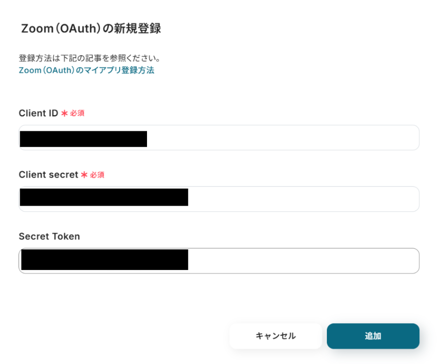 「追加」をクリックしZoomのマイアプリ登録は完了です。