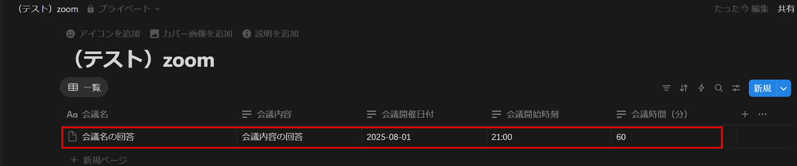 この連携を使えば、Notionで特定のデータベースにページが作成されると、自動的にZoomミーティングが作成されます。