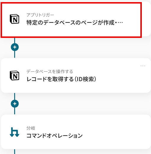 ここではNotionでページが追加されたらフローボットが起動する設定を行います。