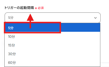 トリガーの起動間隔は、5分/10分/15分/30分/60分の中から選べます。