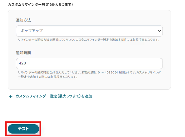 任意でカスタムリマインダーを設定します。
