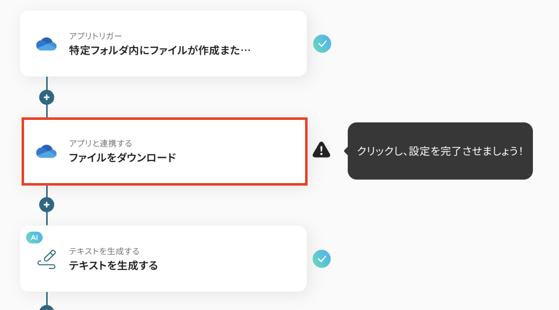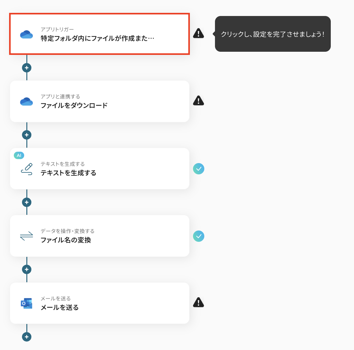 コピーしたテンプレートの、「特定フォルダ内にファイルが作成または更新されたら」をクリックしてください。