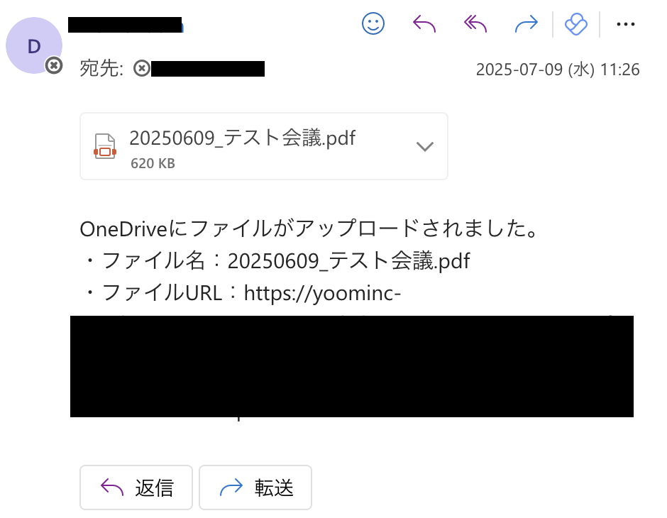 新しいファイルがOneDriveにアップロードされるたびに、関連するチームメンバーに即座に通知を送ることで、情報共有の遅れや見落としを防ぎます。