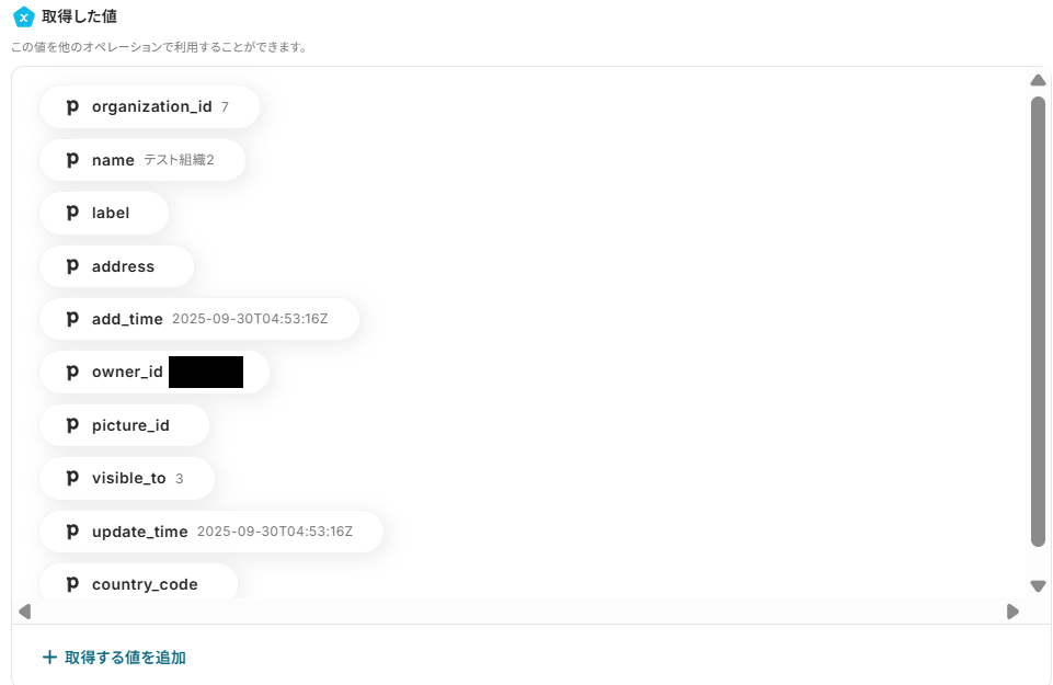 次に、トリガーをテストとして感知させるため、Pipedrive側で組織を追加していきます。