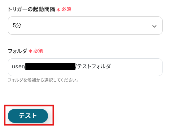 入力が完了したら、「テスト」をクリックしましょう。