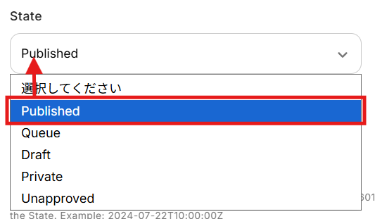 Stateは、編集欄をクリックしてプルダウンから選択できます。