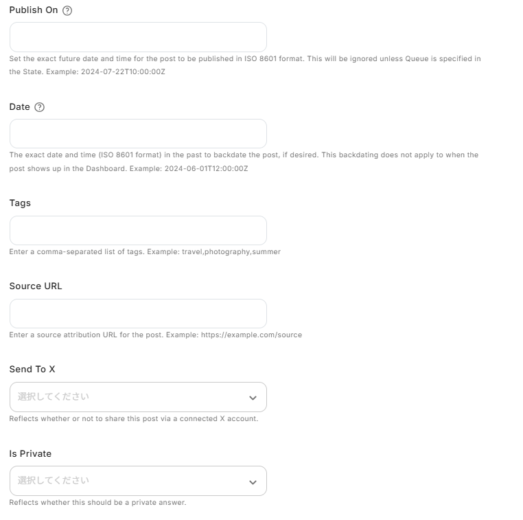- X(Twitter)のオペレーション設定では、投稿するポストのテキスト内容を任意で設定してください
