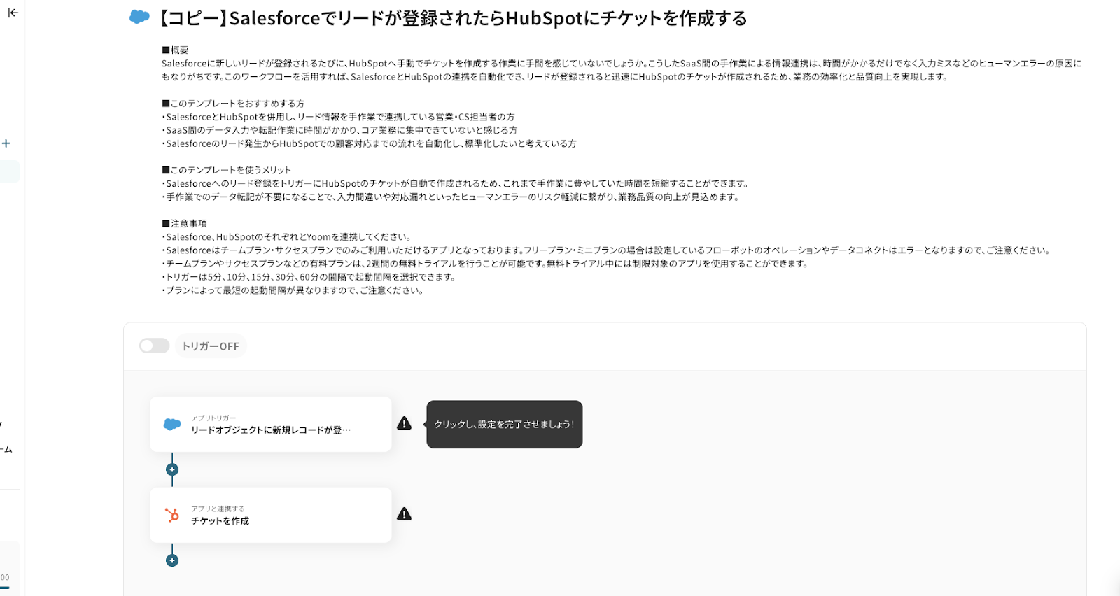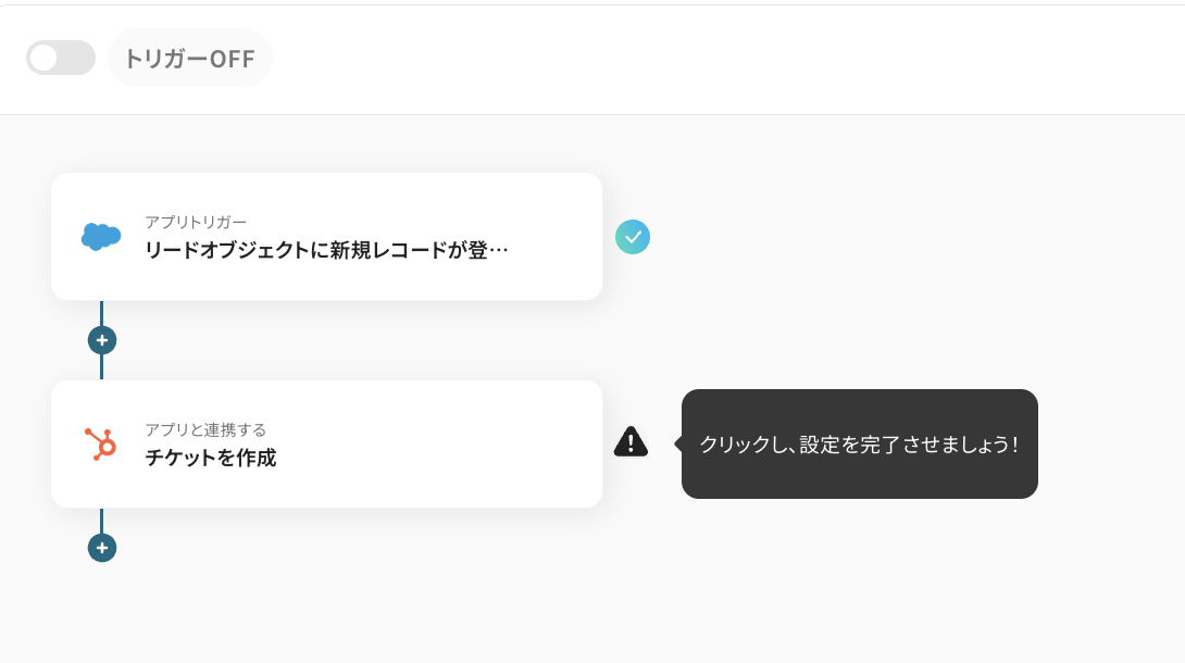 - Salesforceのトリガー設定およびHubSpotのアクション設定