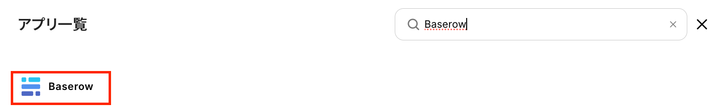 Baserow 検索窓でBaserowを検索し、表示された候補からアプリを選択します。