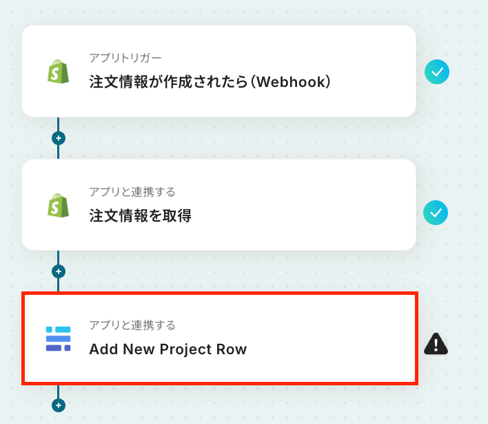 ここでは、Baserowのデータベースに新しい行を追加し、Shopifyで発生した注文情報を自動入力する設定を行います。