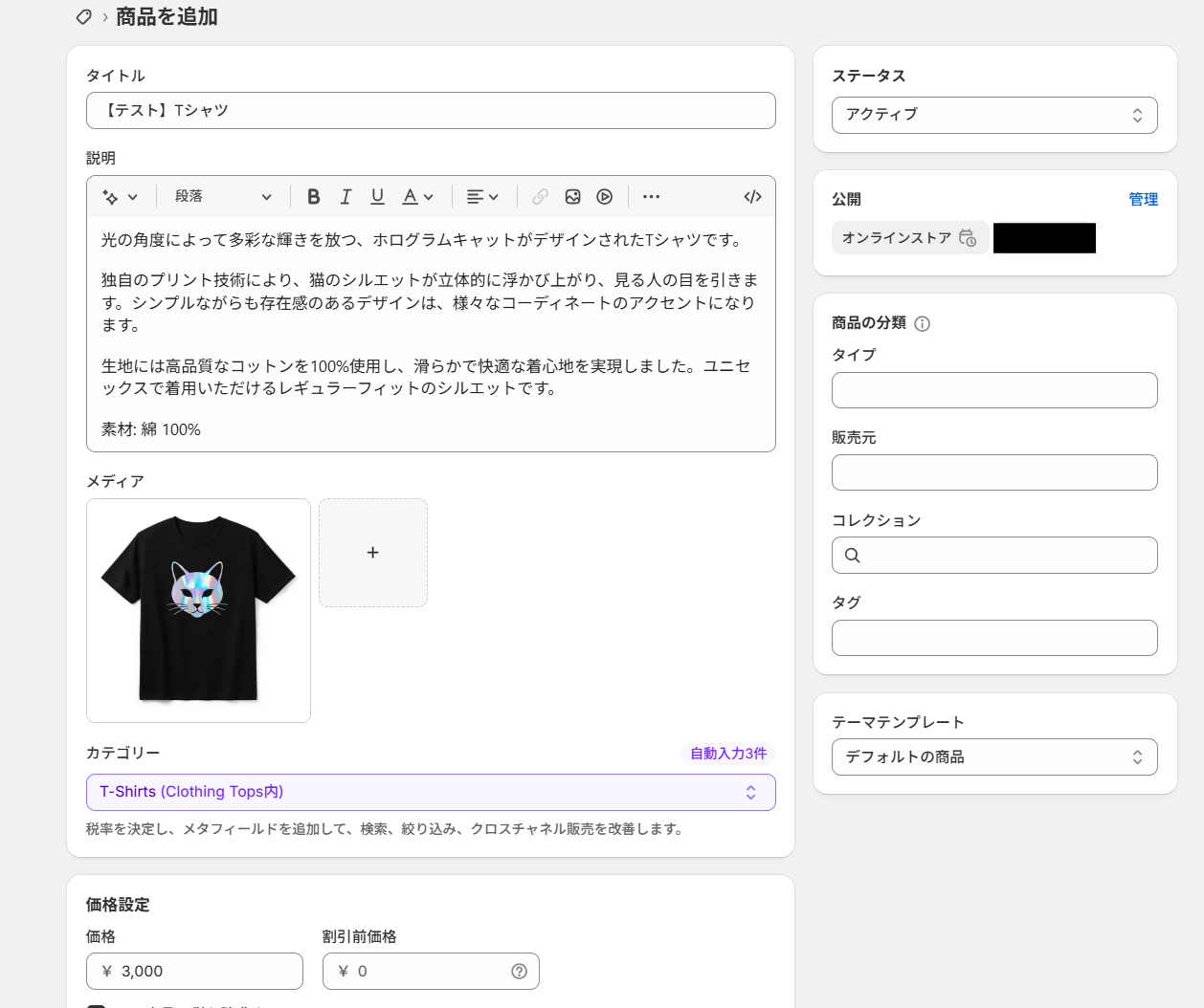 イベントは「商品作成」、フォーマットはJSONを指定してください。