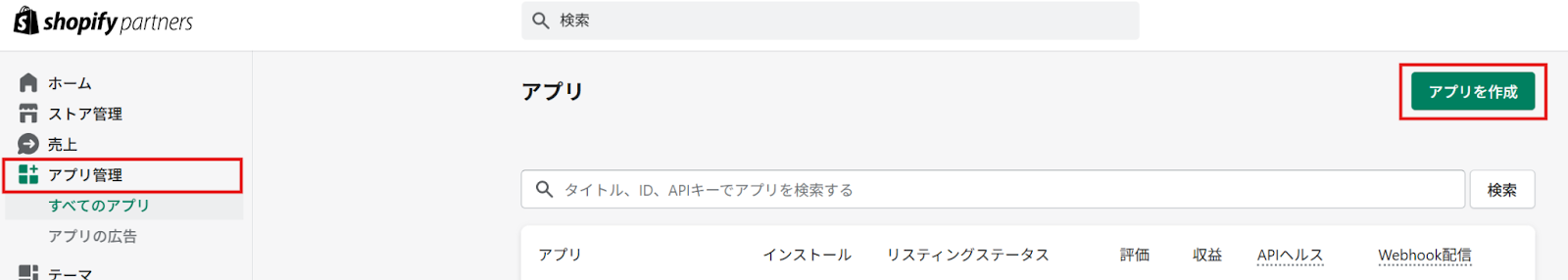 左側の「アプリ管理」から「アプリを作成」をクリックします。