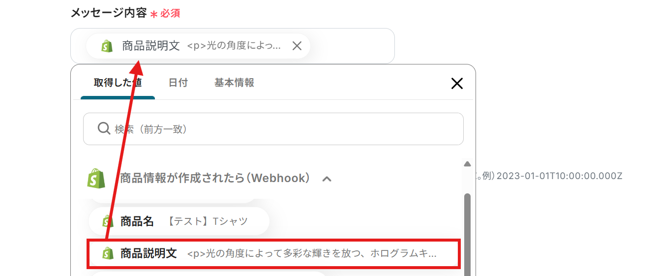 トリガーには「商品情報が作成されたら(Webhook)」を選びましょう。