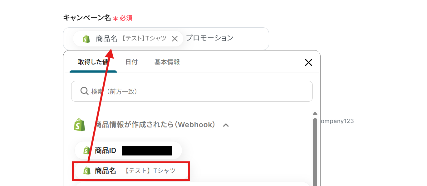 - Brevoの「コンタクトを作成」オペレーションでは、Shopifyから取得した顧客データを動的な値として、Brevoの各コンタクト項目(例えば、メールアドレス、姓、名、会社名など)に自由に割り当てることが可能です。