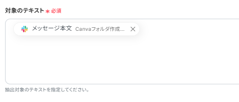 データを抽出する対象のテキストもあらかじめテンプレートで設定されているので下記の通りでOKです。