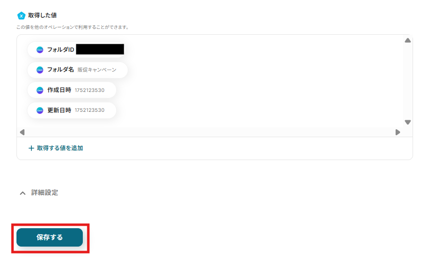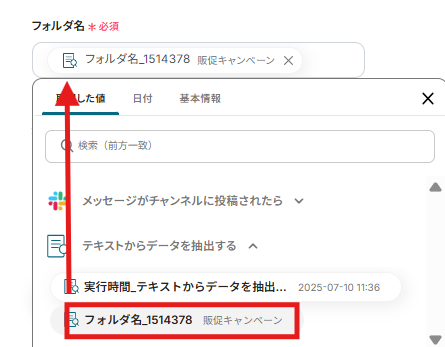 編集欄をクリックし、「テキストからデータを抽出する」の中からフォルダ名を選択します。