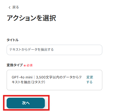 変換タイプはテンプレートであらかじめ設定されていますので、「次へ」をクリックしてください。