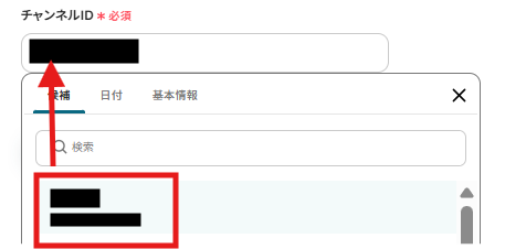編集欄をクリックすると、Slackのチャンネル候補が表示されるので、そこから対象のチャンネルを選択します。選択するとIDが自動で入力されます。